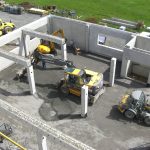 Konstruktion: Keller Stahlbeton FT Halle Erdgeschoss in Stahlbau als 2- schiffige Rahmenkonstruktion. Fertigstellung: ca. KW 35, 2012.