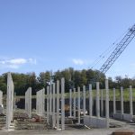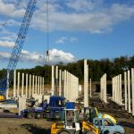 Derzeitiger Stand der Baustelle: Fassadenbau und Dacheindeckung