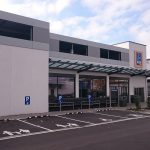Das Parkdeck wurde auf dem Dach des Aldi-Marktes realisiert und kann über eine seitlich angebaute Rampe erreicht werden.