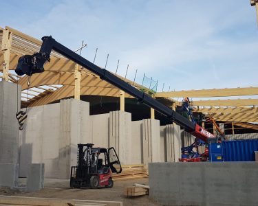 Auch bei der Erweiterung wurde aufgrund der hohen Ansprüche an Düngerlagerhallen die aufgehenden Wände in Stahlbetonfertigteilbau erstellt und mit einer Beschichtung versehen.
