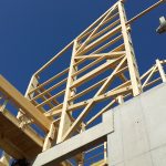 Die Trennwände der Lagerboxen werden aus Stahlbetonfertigteilelementen errichtet. Die Holztragkonstruktion in Ingenieurholzbauweise, die Dacheindeckung erfolgt mit Faserzement-Wellplatten.