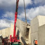 Die Wandelemente bestehen aus Stahlbetonfertigteilen mit eine Höhe bis zu 12,50 m. Die Lagerkapazität der Halle beträgt ca. 7.800 t .