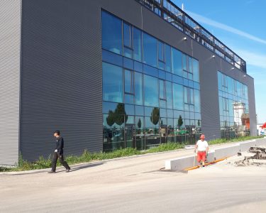Das Bürogebäude besteht aus 3 Vollgeschossen, aufgesetzten Stahlbau-Technikgeschoss sowie zusätzlicher Vollunterkellerung.