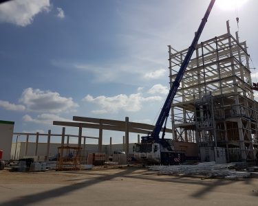 Der Neubau umfasst die Errichtung einer Saatgutanlage mit Maschinenturm und Annahmehalle, einschließlich dem Bau einer dazugehörigen Palettenlagerhalle.
