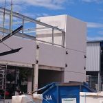 Überdachung des Parkdecks mit einem Stahlrahmenbau.