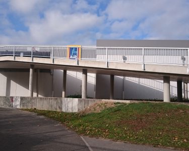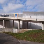Das Parkdeck wurde auf dem Dach des Aldi-Marktes realisiert und kann über eine seitlich angebaute Rampe erreicht werden.