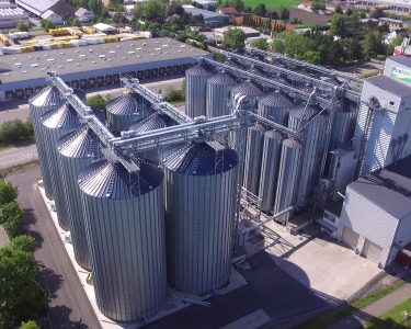 In Worms-Rheindürkheim haben wir im Auftrag der Firma Proland Agrarhandel GmbH das bereits bestehende Getreideterminal aus 15 Rundsilos, 5 Bearbeitungszellen, Maschinenturm, Annahmehalle und Getreidetrocknung erweitert.