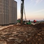 Derzeit finden die Gründungsarbeiten durch Betonbohrsäulen statt.