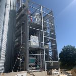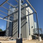 Der Neubau umfasst eine Gesamtlagerkapazität von 4.150 t Getreide und besteht aus 5 Rundsilos für je 830 t Getreide sowie einem Maschinenhaus und einer überdachten Annahmegosse.